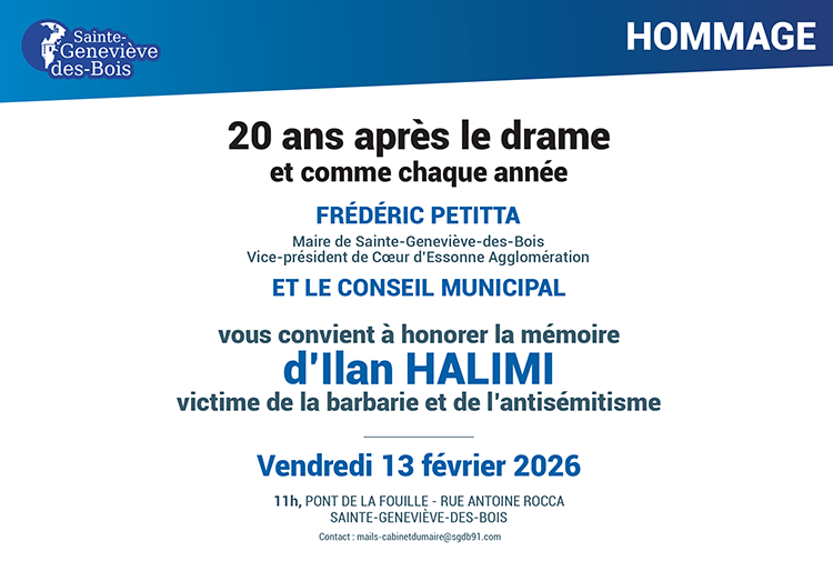 Comme tous les ans, nous vous invitons à rendre hommage à Ilan Halimi, vendredi 13 février à 13h au Pont de la Fouille. C’est ici, il y a 20 ans que l’on découvrait le corps supplicié de ce jeune tué parce que juif.